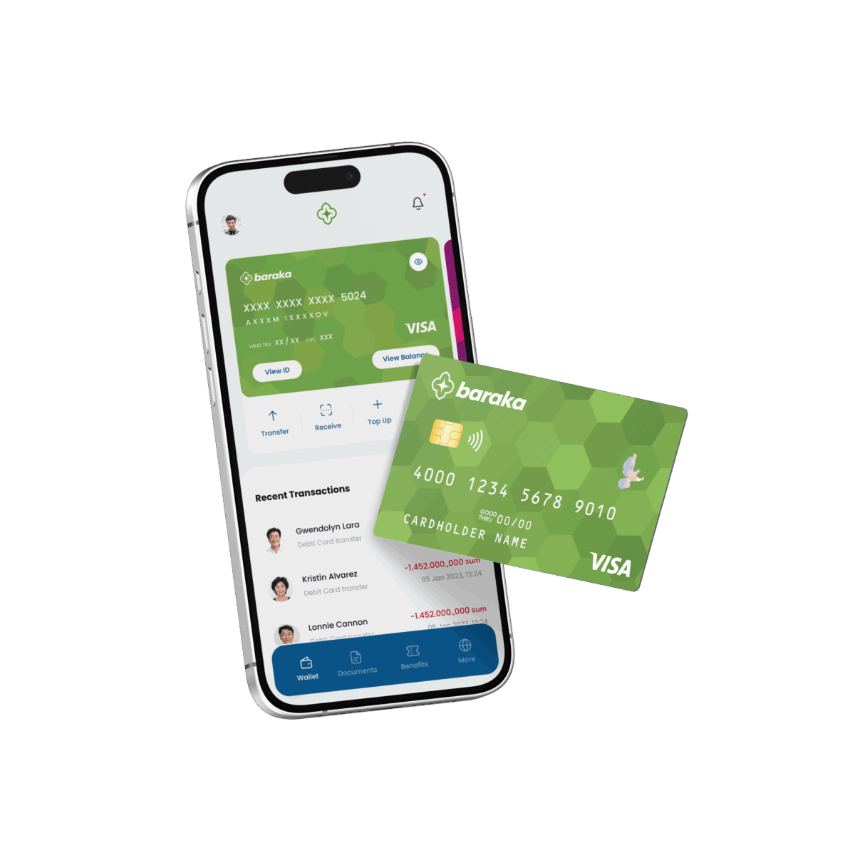 Ijtimoiy yordam (nafaqa) va xizmatlarni olish hamda ularni boshqarish endi yanada osonlashdi. Aloqabank va Xalq banklari tomonidan chiqarilgan Baraka Visa kartasi yordamida to‘lov va xaridlarni nafaqat O‘zbekistonda, balki dunyoning istalgan mamlakatidagi POS-terminallarda amalga oshirishingiz mumkin.